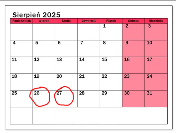 HARMONOGRAM EGZAMINÓW POPRAWKOWYCH SIERPIEŃ 2025 r.