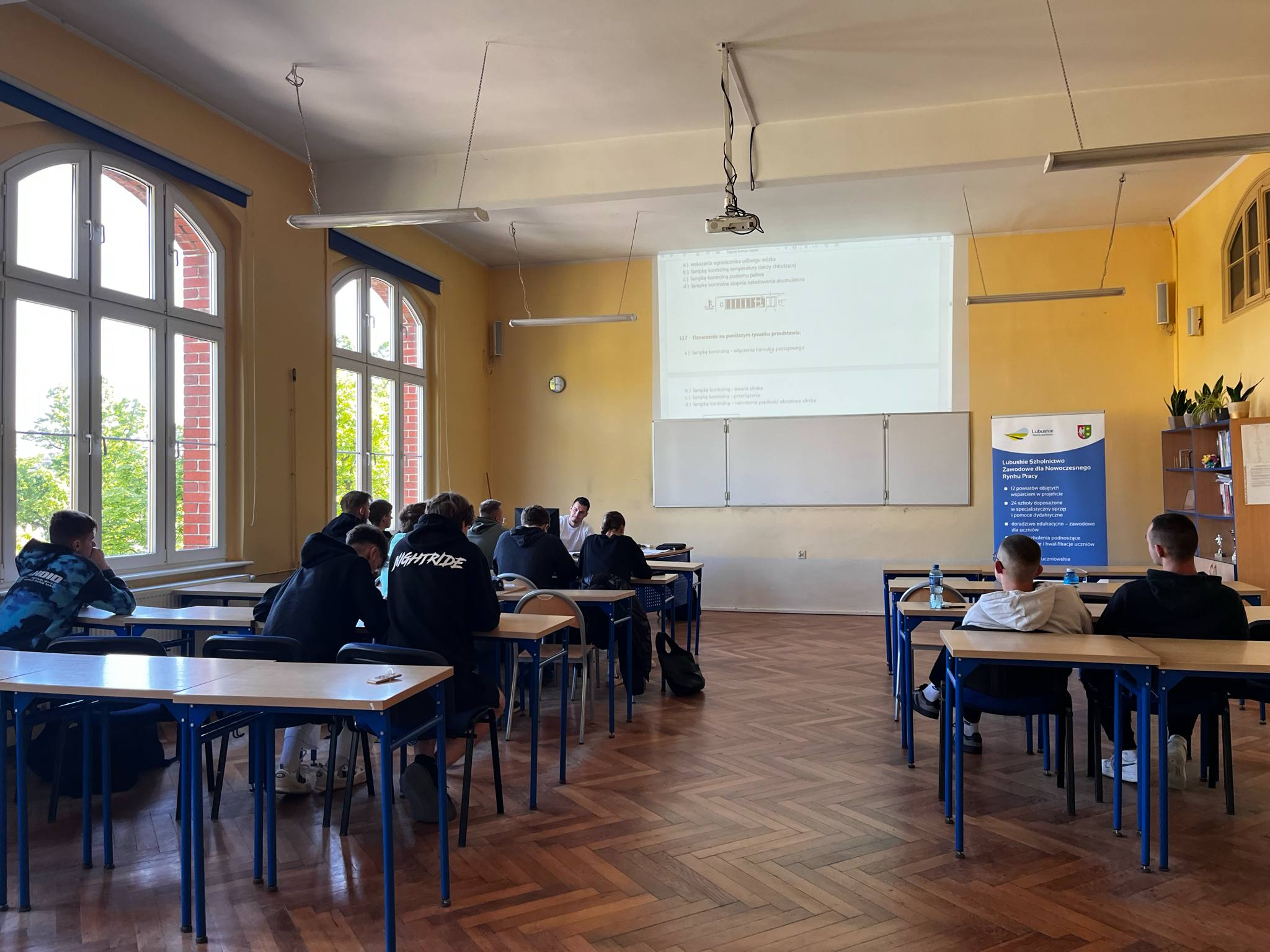 Pierwsza grupa uczniów rozpoczęła kurs na obsługę wózka widłowego. Przez pierwsze dwa dni została zrealizowana teoria, natomiast w miesiącu maju odbędą się zajęcia praktyczne oraz egzamin nadający uprawnienia.  Pierwsza grupa liczyła 15 uczniów, łącznie kursy ten obejmuje 35 uczniów. Chętnych zapraszamy, ponieważ jest jeszcze kilka wolnych miejsc. Kurs ten skierowany jest głównie dla uczniów Technikum Logistycznego oraz uczniów Szkoły Branżowej w zawodzie: mechanik pojazdów samochodowych.