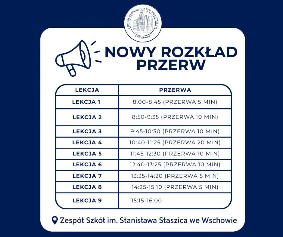 NOWY ROZKŁAD PRZERW od 01-09-2025