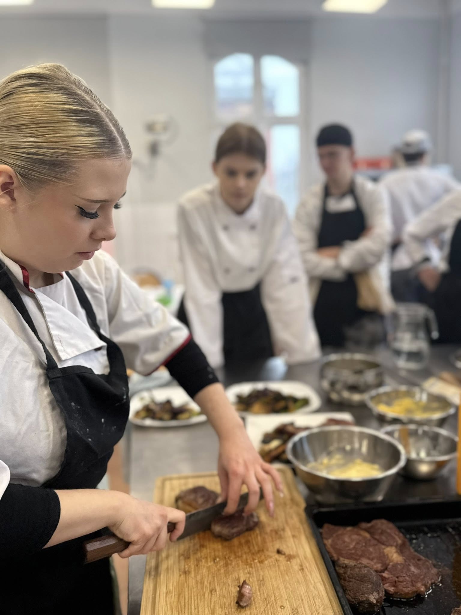 Dziś w naszej szkolnej kuchni zapachniało prawdziwym fine diningiem i najlepszym street foodem! Gościliśmy wyjątkowych profesjonalistów z WAGYU SteakHouse – szefa kuchni, pana Michal Tórz, oraz jego zastępcę, pana Kacpra Kurosza.