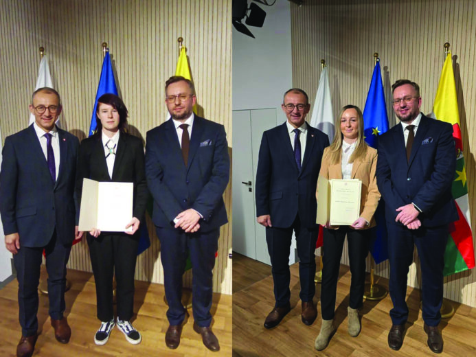 Uczennice odebrały dyplomy z rąk Wojewody Lubuskiego Marka Cebuli oraz Lubuskiego Kuratora Oświaty Mariusza Biniewskiego podczas uroczystej gali w dniu 20 listopada w Gminnym Ośrodku Kultury w Kłodawie.