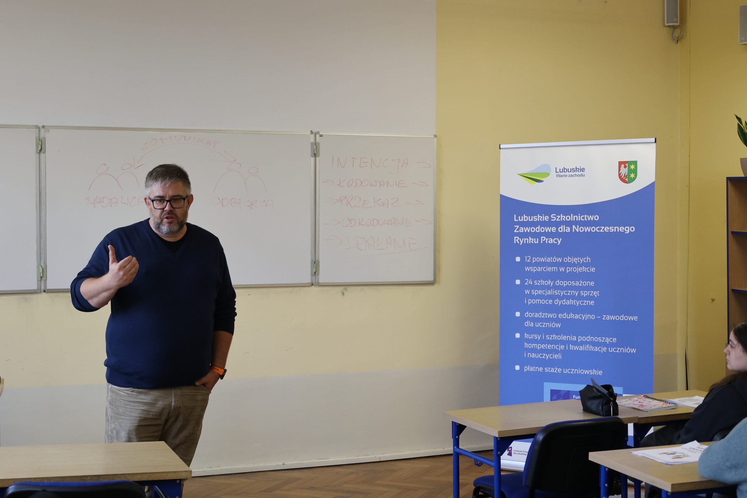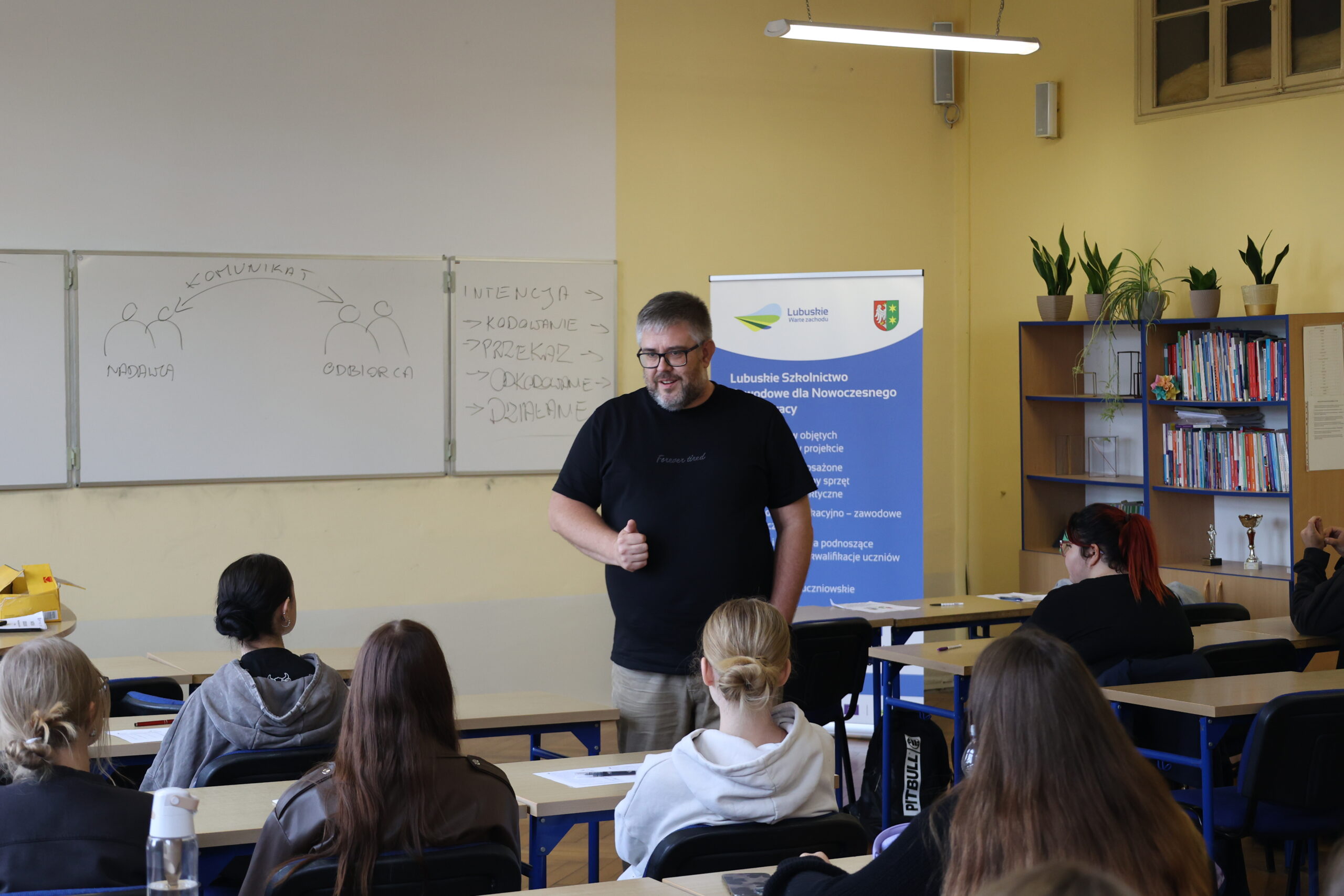 W ramach projektu „Lubuskie szkolnictwo zawodowe dla nowoczesnego rynku pracy” nasi uczniowie wzięli udział w szkoleniu „Rozwój kompetencji społecznych na rynek pracy”. Podczas spotkania młodzież zdobyła wiedzę o znaczeniu komunikacji, współpracy, empatii i asertywności w życiu zawodowym. Zajęcia teoretycznepołączone były z warsztatami, podczas których uczniowie rozwijali swoją wiedzę z zakresu autoprezentacjioraz rozmowy kwalifikacyjnej. Szkolenie okazało się cennym doświadczeniem przygotowującym do świadomego i aktywnego uczestnictwa w rynku pracy.