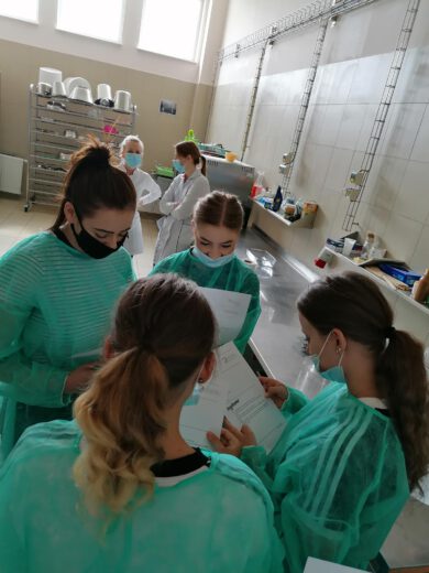 Przed przystąpieniem do warsztatów uczniowie wysłuchali wykładów dotyczących:” Żywienia człowieka – zapotrzebowaniu na składniki odżywcze” oraz „Systemów jakości w przemyśle spożywczym” prowadzonym przez dr Justynę Korycką – Korwek.