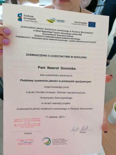 Po długiej pandemicznej przerwie uczniowie I Zespołu Szkół we Wschowie wzięli udział w” Warsztatach Gastronomicznych Slow Food” oraz szkoleniu poświęconemu „Podstawom systemów jakości w przemyśle spożywczym” organizowanych przez Lubuski Ośrodek Innowacji i Wdrożeń Agrotechnicznych Uniwersytetu Zielonogórskiego w Kalsku. Warsztaty odbyły się w ramach realizacji projektu Modernizacja Kształcenia Zawodowego w Powiecie Wschowskim.