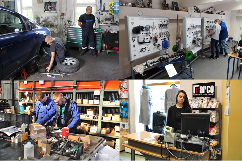 - zajęcia z przedmiotów ogólnokształcących odbywają się w szkole, natomiast przedmiotów zawodowych – na miesięcznych kursach poza szkołą;