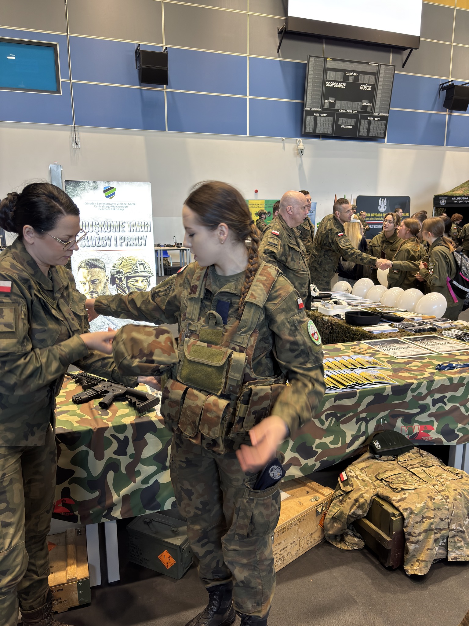 Nie zabrakło także elementów praktycznych – uczestnicy mieli okazję zobaczyć wyposażenie żołnierzy, zapoznać się z ofertą edukacyjną uczelni wojskowych 🎓 oraz skosztować tradycyjnej wojskowej grochówki. 🍲