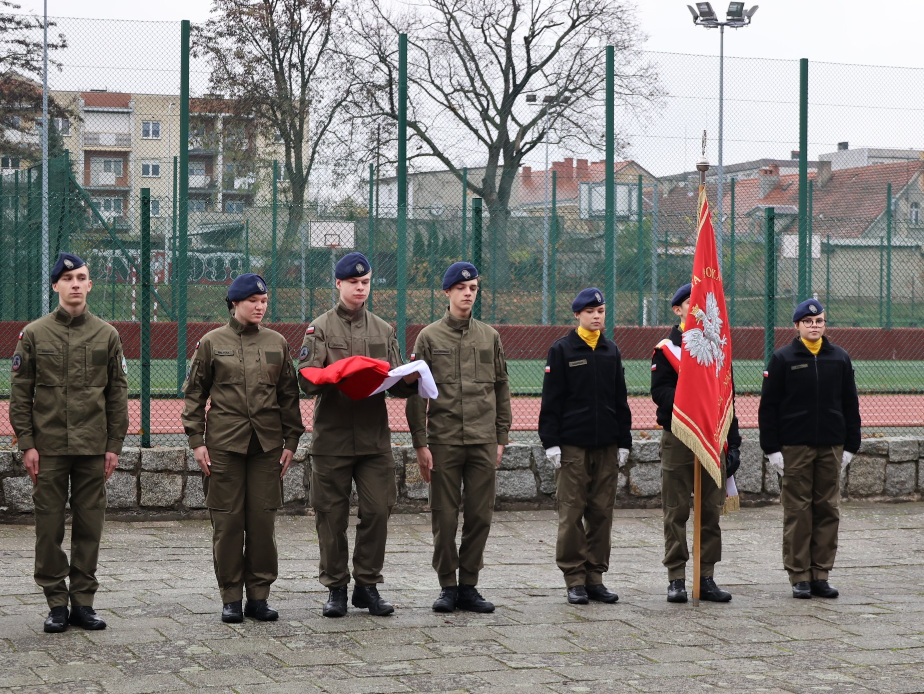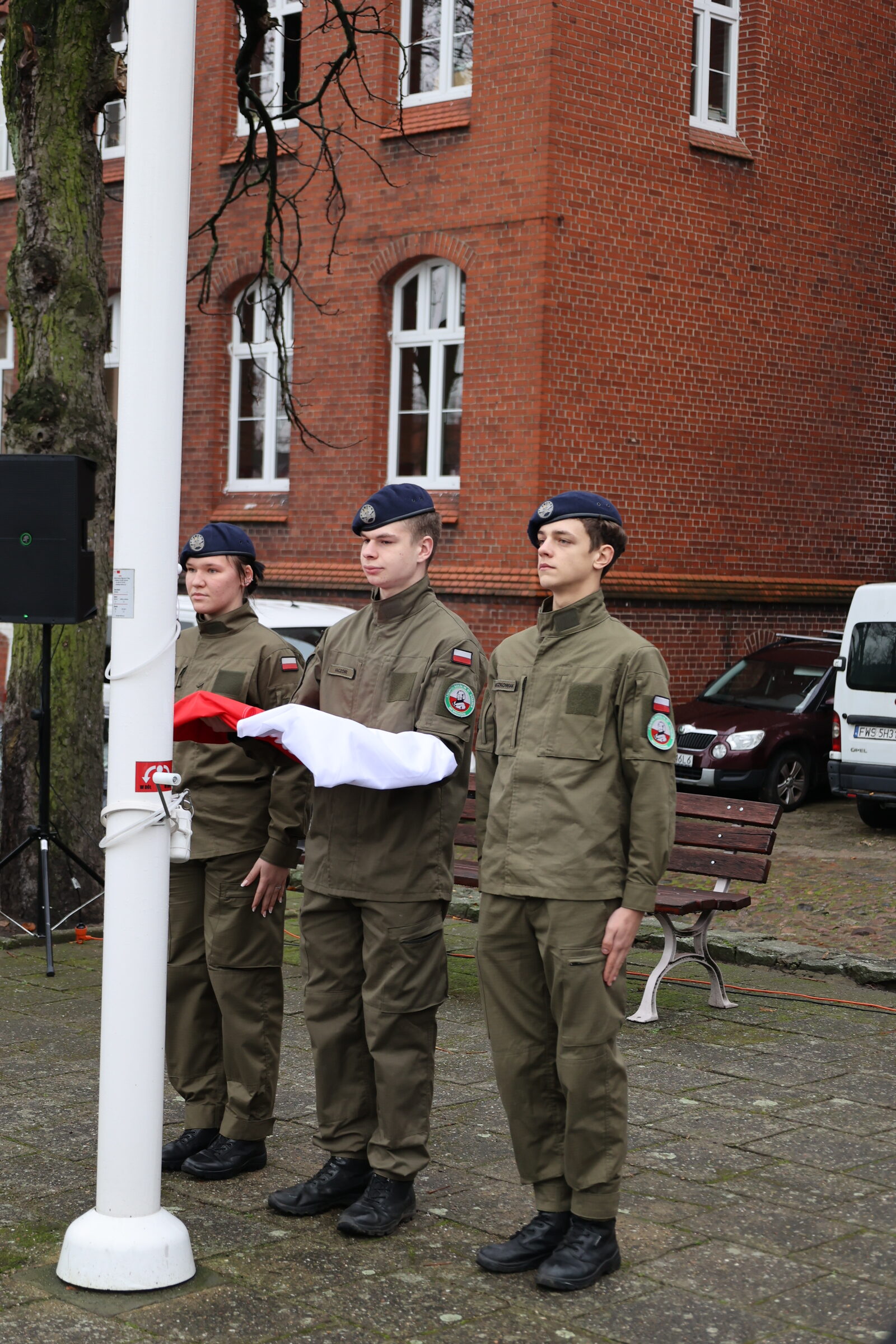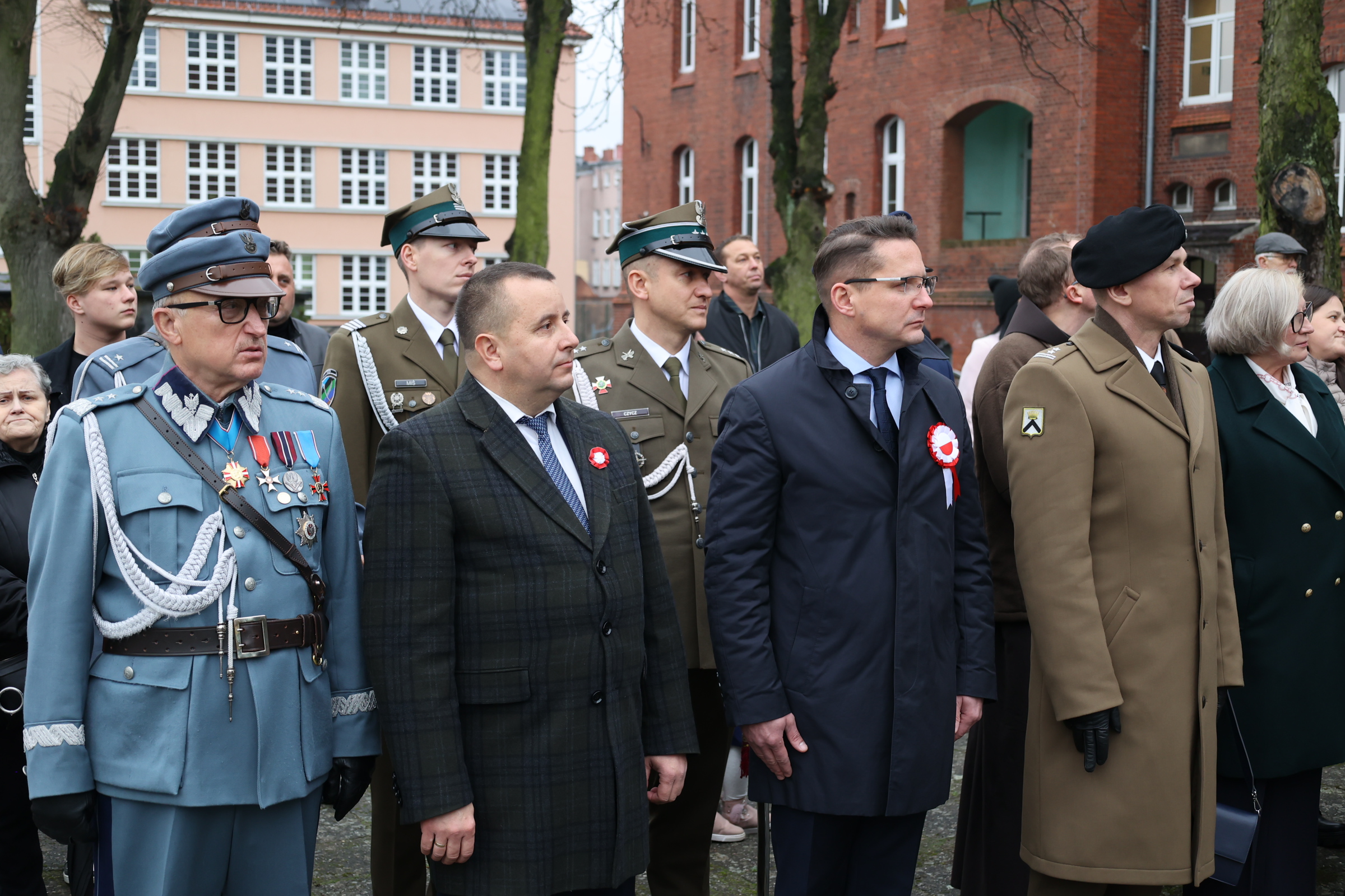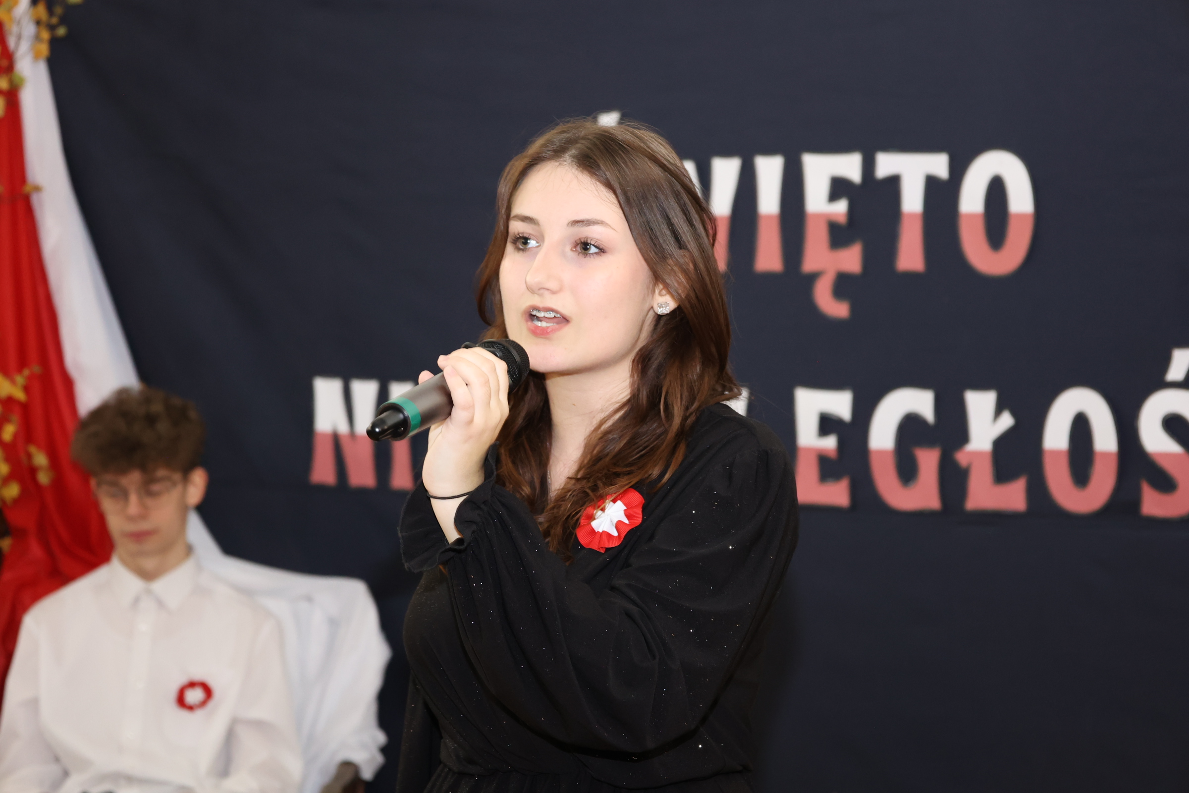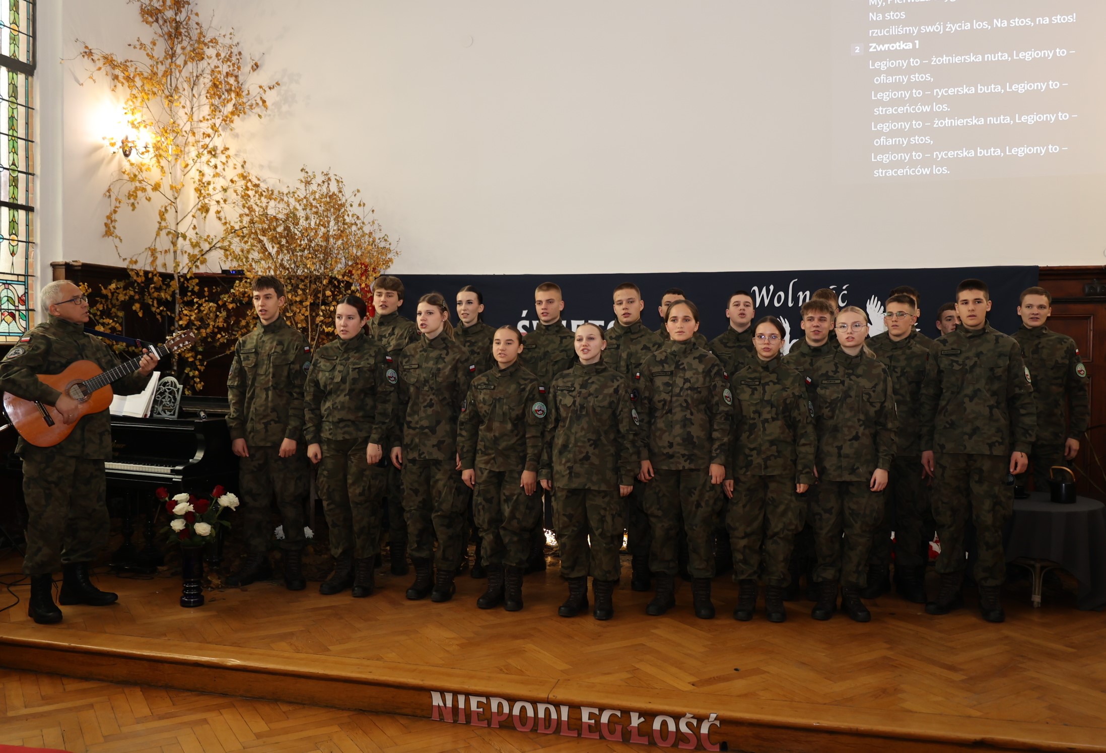 Nie zabrakło również pieśni patriotycznych – w tym „My, Pierwsza Brygada”, wykonanej przez uczniów klasy mundurowej z akompaniamentem gitary. Zwieńczeniem akademii było przesłanie o potrzebie troski o Ojczyznę, oparte na słowach: