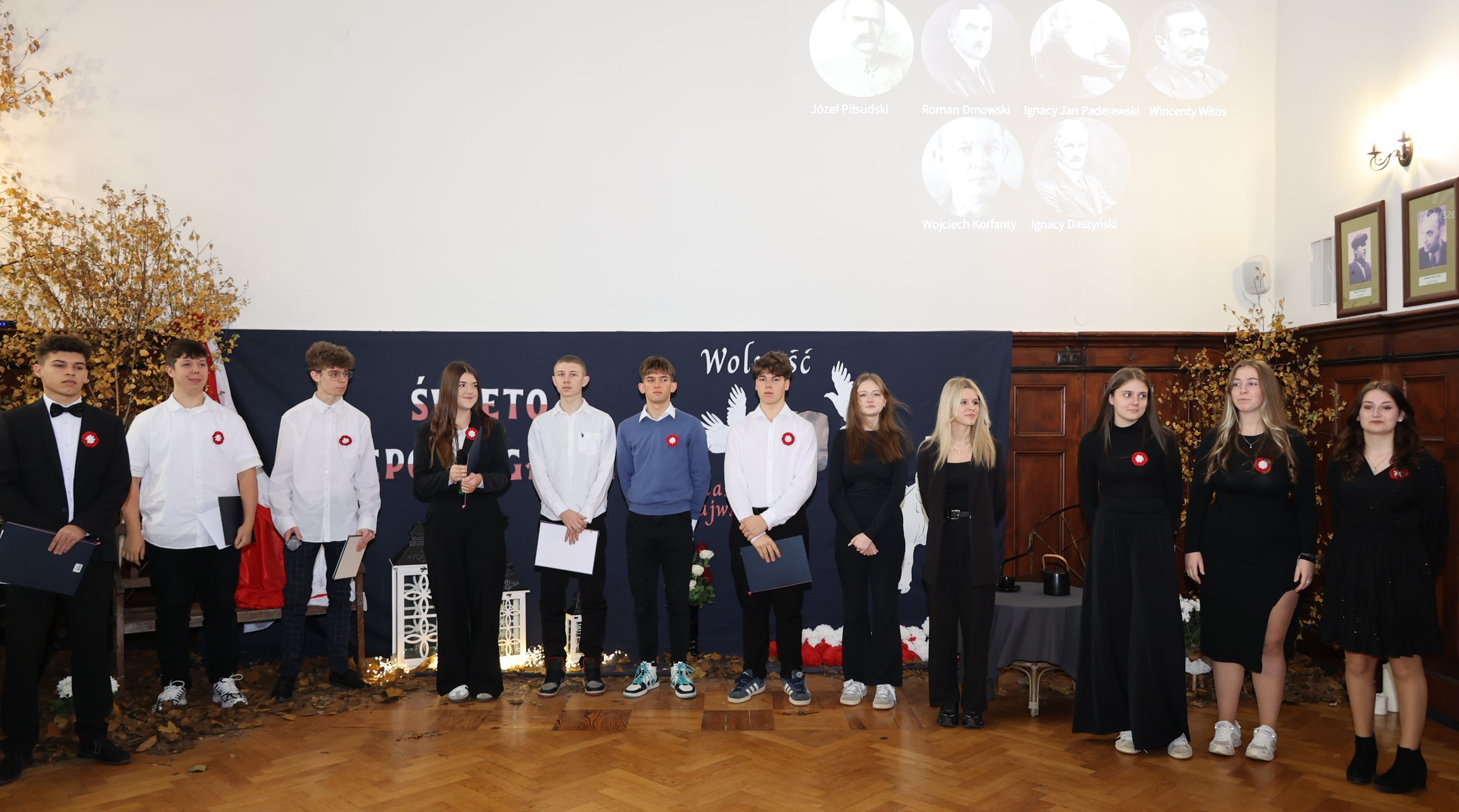 Uczniowie zaprezentowali także postacie Ojców Niepodległości – Józefa Piłsudskiego, Romana Dmowskiego, Ignacego Jana Paderewskiego, Wincentego Witosa, Wojciecha Korfantego, Ignacego Daszyńskiego oraz patrona szkoły – Stanisława Staszica. Każdy z bohaterów został przybliżony poprzez krótką charakterystykę i cytaty, ukazujące ich zasługi oraz idee, które przyczyniły się do odzyskania wolności przez Polskę.