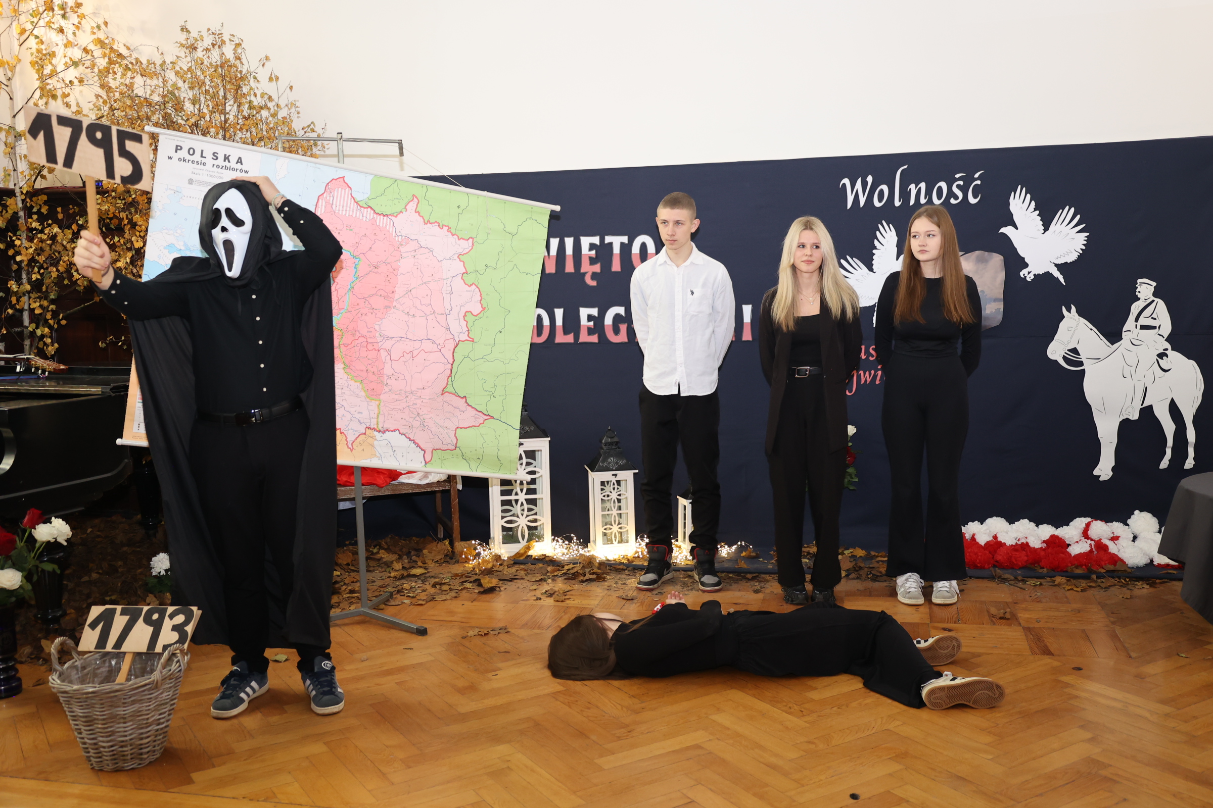 Podczas części artystycznej młodzież przypomniała trudną drogę Polski do niepodległości – od rozbiorów, poprzez powstania narodowe, aż po odzyskanie wolności w 1918 roku. Wykorzystano elementy teatralne, symboliczne sceny oraz muzykę Fryderyka Chopina, które wprowadziły widzów w nastrój zadumy i refleksji.