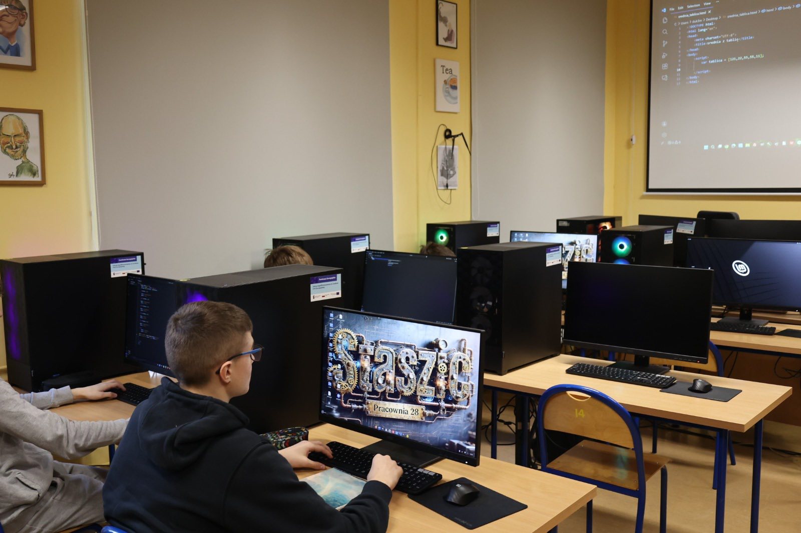 Komputery stacjonarne zasiliły pracownię komputerową, zwiększając dostęp do nowoczesnych narzędzi i technologii na zajęciach.